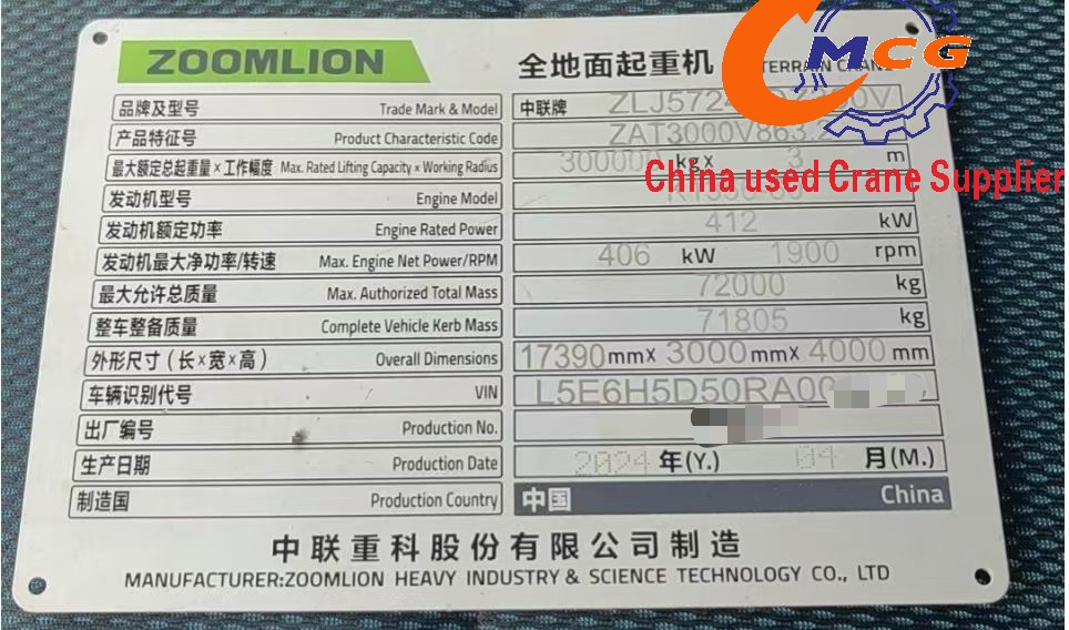 | Maximum lifting capacity | 300ton | counterweight | 100ton |
