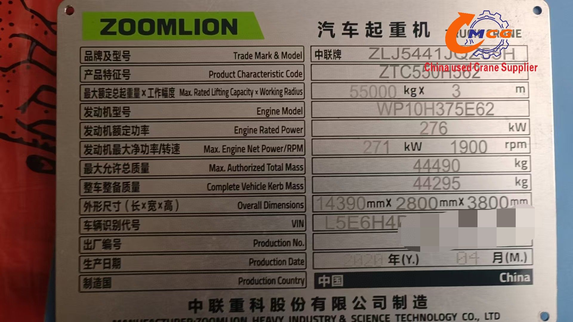 | model | ZTC550H5 | Flying Jib | 9.5meter |