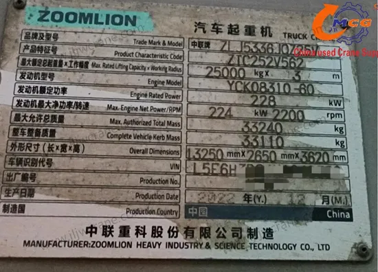 | Maximum lifting capacity | 25ton | counterweight | 7ton |