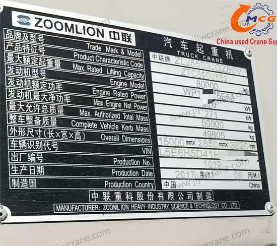 | model | ZTC800V5 | Flying Jib | 17.5meter |